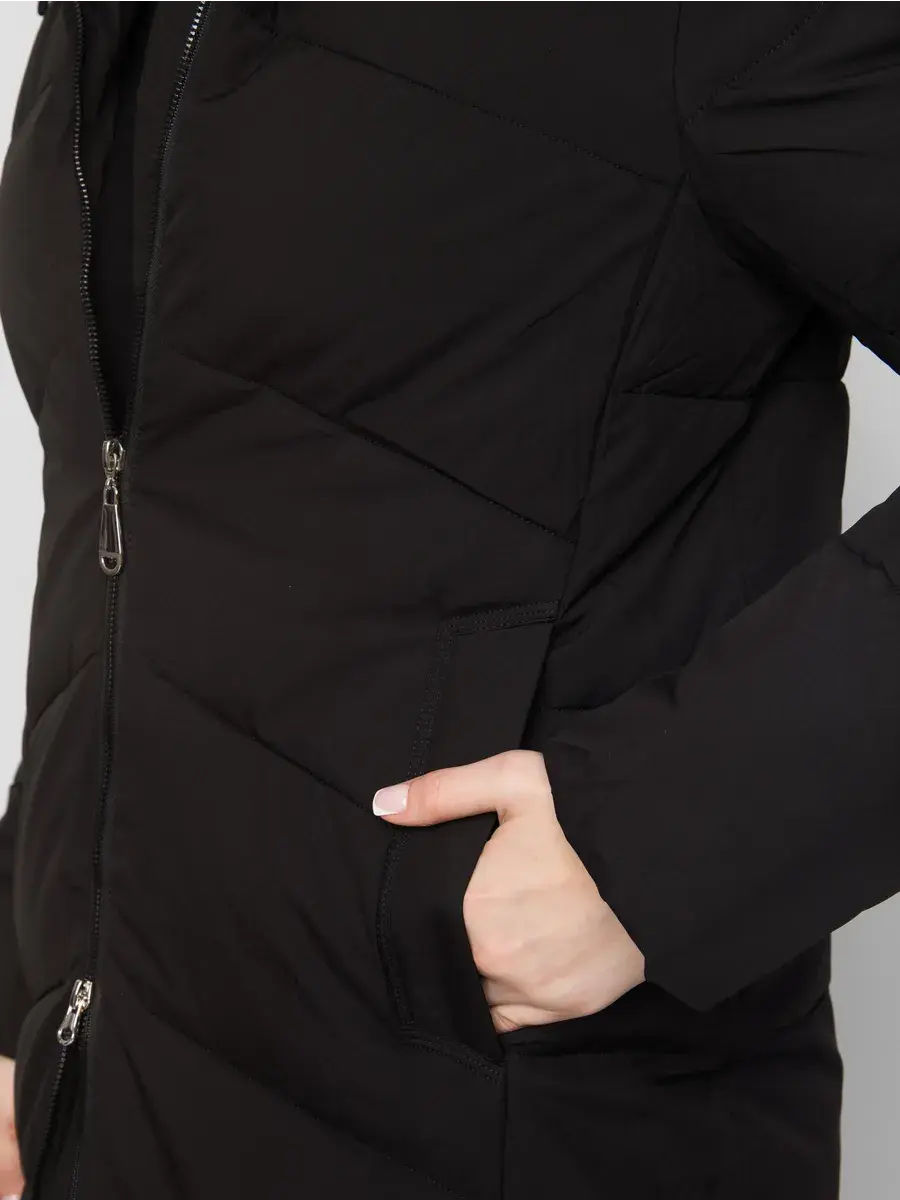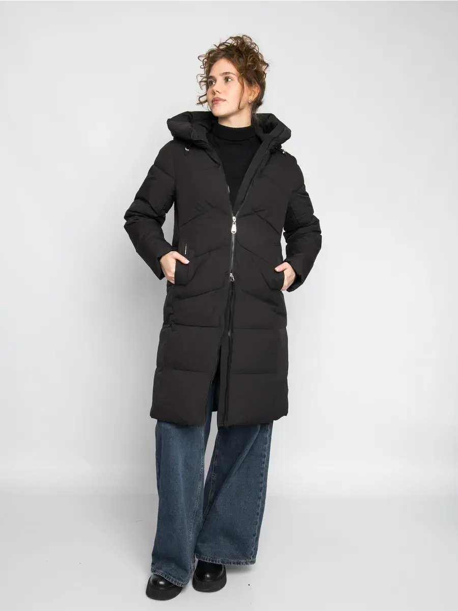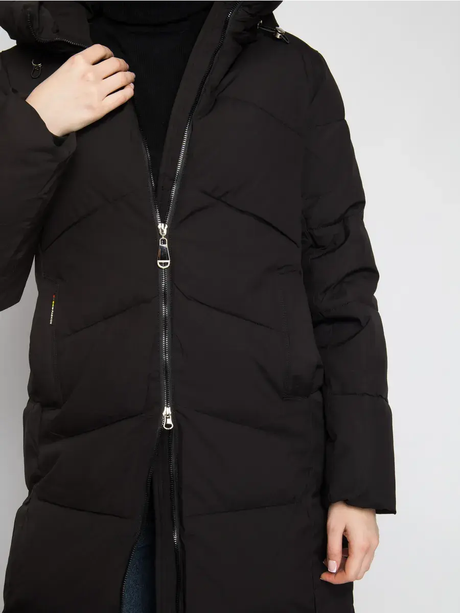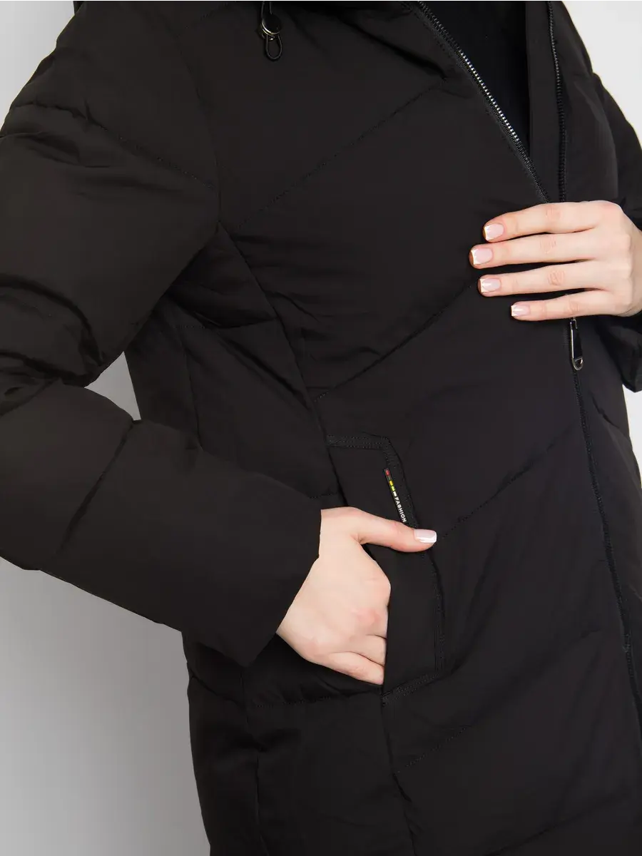 Куртка зимняя женская - это идеальный выбор для холодного сезона. Эта удлиненная модель с капюшоном обеспечит вам тепло и комфорт даже в самые морозные дни. Куртка выполнена из полиэстера с гладкой фактурой и утеплена холлофайбером, что гарантирует превосходную защиту от холода. Модель имеет прямой покрой, большой капюшон и ветрозащитный, водоотталкивающий материал, что делает ее идеальной для активного отдыха и повседневной носки. Застежка на молнию и кнопки обеспечивает надежную фиксацию, а прорезные карманы удобны для хранения необходимых мелочей. Куртка идеально дополнит ваш гардероб. Модель представлена в различных размерах, в том числе и для высоких женщин.
