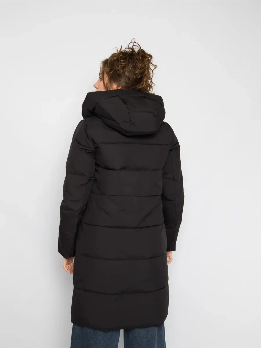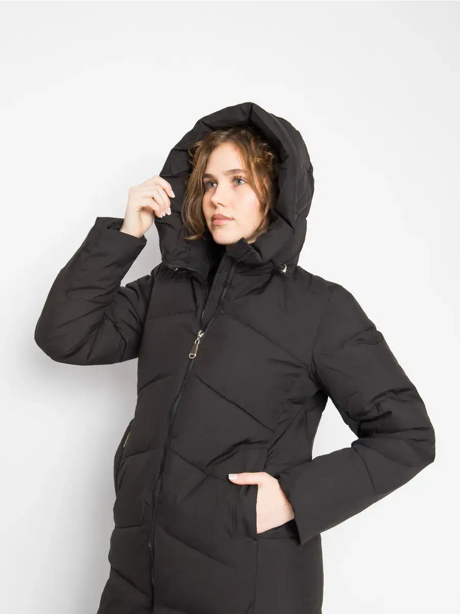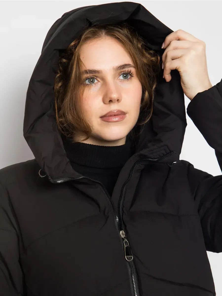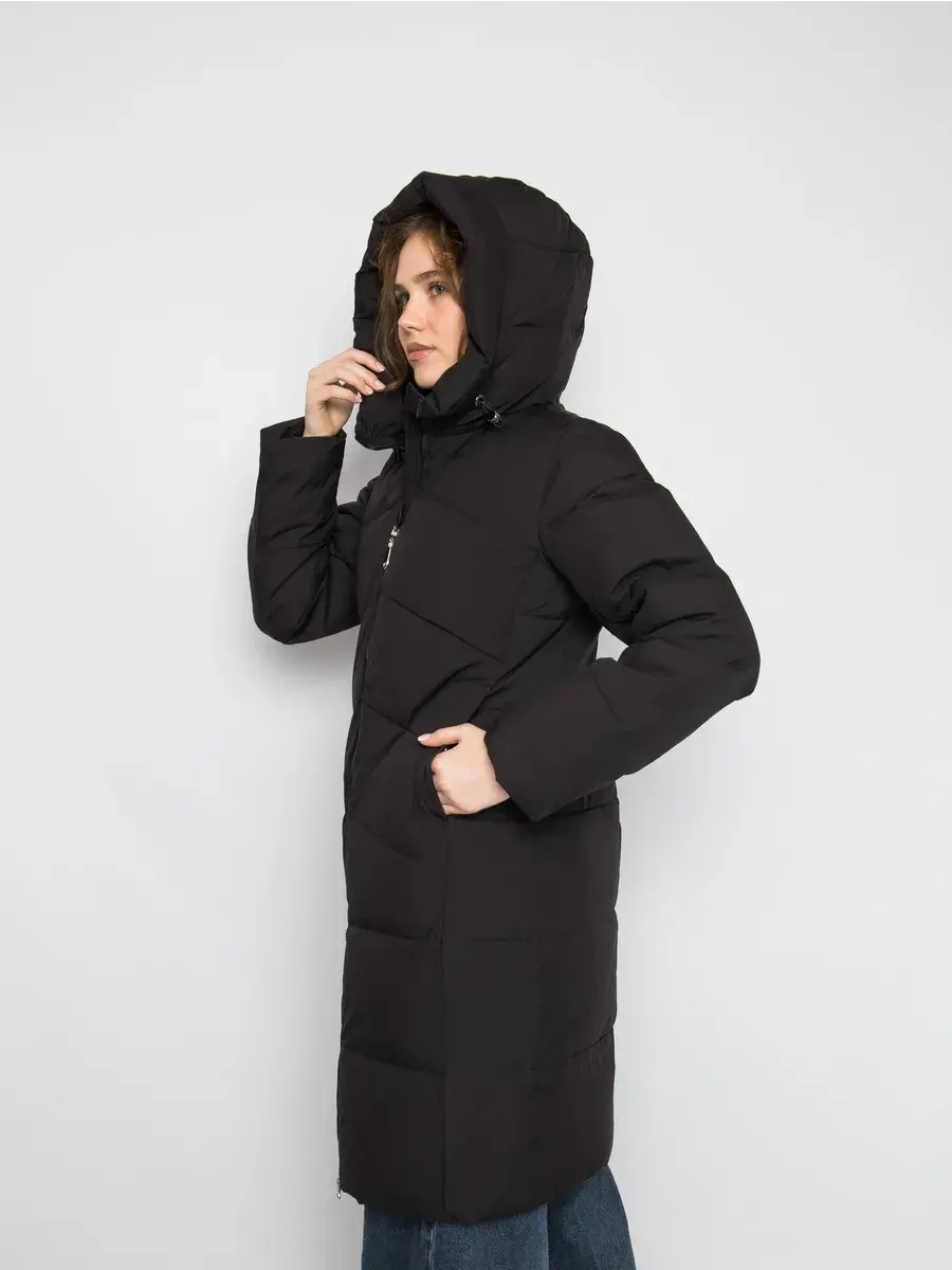 Куртка зимняя женская - это идеальный выбор для холодного сезона. Эта удлиненная модель с капюшоном обеспечит вам тепло и комфорт даже в самые морозные дни. Куртка выполнена из полиэстера с гладкой фактурой и утеплена холлофайбером, что гарантирует превосходную защиту от холода. Модель имеет прямой покрой, большой капюшон и ветрозащитный, водоотталкивающий материал, что делает ее идеальной для активного отдыха и повседневной носки. Застежка на молнию и кнопки обеспечивает надежную фиксацию, а прорезные карманы удобны для хранения необходимых мелочей. Куртка идеально дополнит ваш гардероб. Модель представлена в различных размерах, в том числе и для высоких женщин.