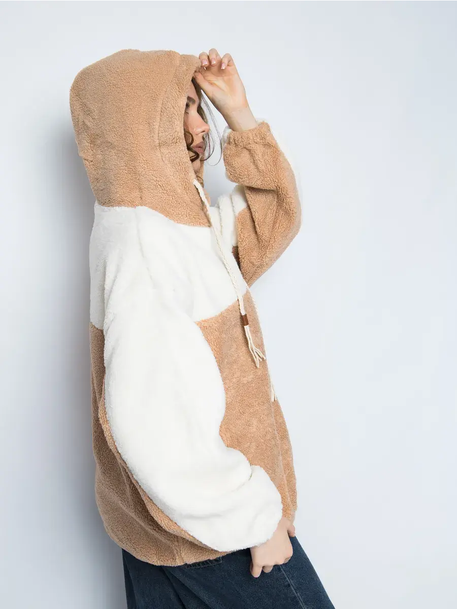 Толстовка утепленная - это идеальное сочетание комфорта и стиля, созданное специально для холодного сезона. Эта теплая худиа с капюшоном, выполненная из мягкого плюша, обеспечит вам уют и тепло в прохладные дни. Свободный крой и удобный капюшон делают ее идеальным вариантом для повседневной носки. Толстовка женская оверсайз оснащена прорезными карманами для удобства, а завязки позволяют отрегулировать посадку капюшона по размеру головы. Благодаря универсальному розовому или белому цвету, эта худи легко сочетается с любым гардеробом.
