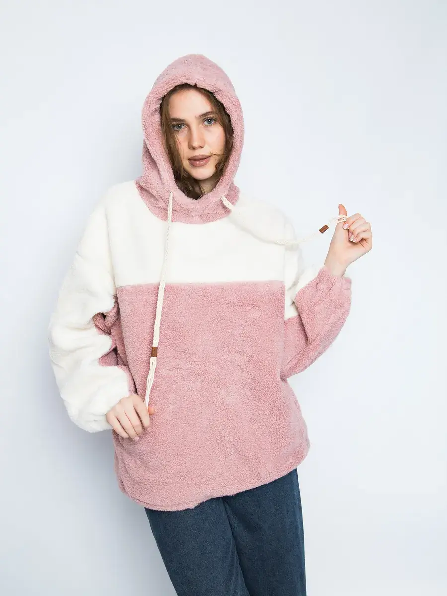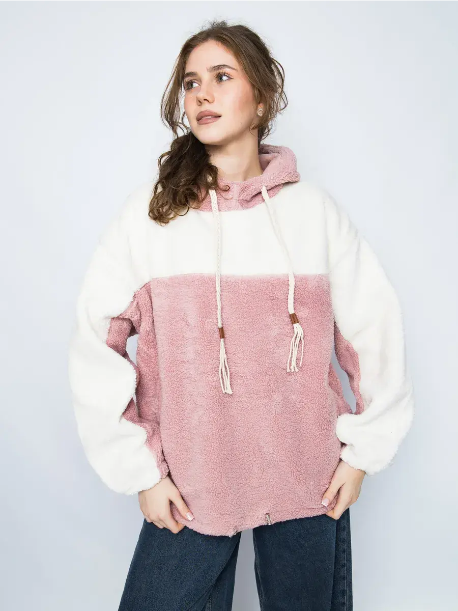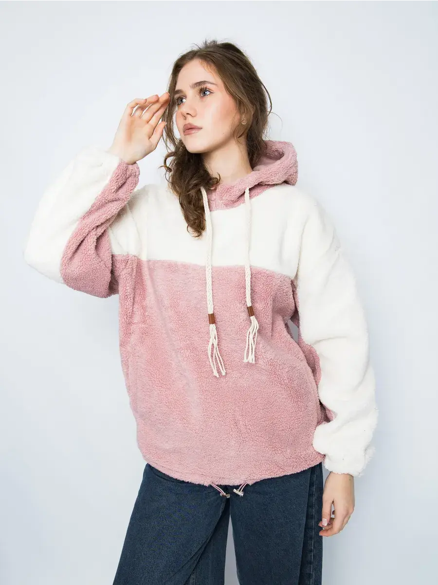 Толстовка утепленная - это идеальное сочетание комфорта и стиля, созданное специально для холодного сезона. Эта теплая худиа с капюшоном, выполненная из мягкого плюша, обеспечит вам уют и тепло в прохладные дни. Свободный крой и удобный капюшон делают ее идеальным вариантом для повседневной носки. Толстовка женская оверсайз оснащена прорезными карманами для удобства, а завязки позволяют отрегулировать посадку капюшона по размеру головы. Благодаря универсальному розовому или белому цвету, эта худи легко сочетается с любым гардеробом.