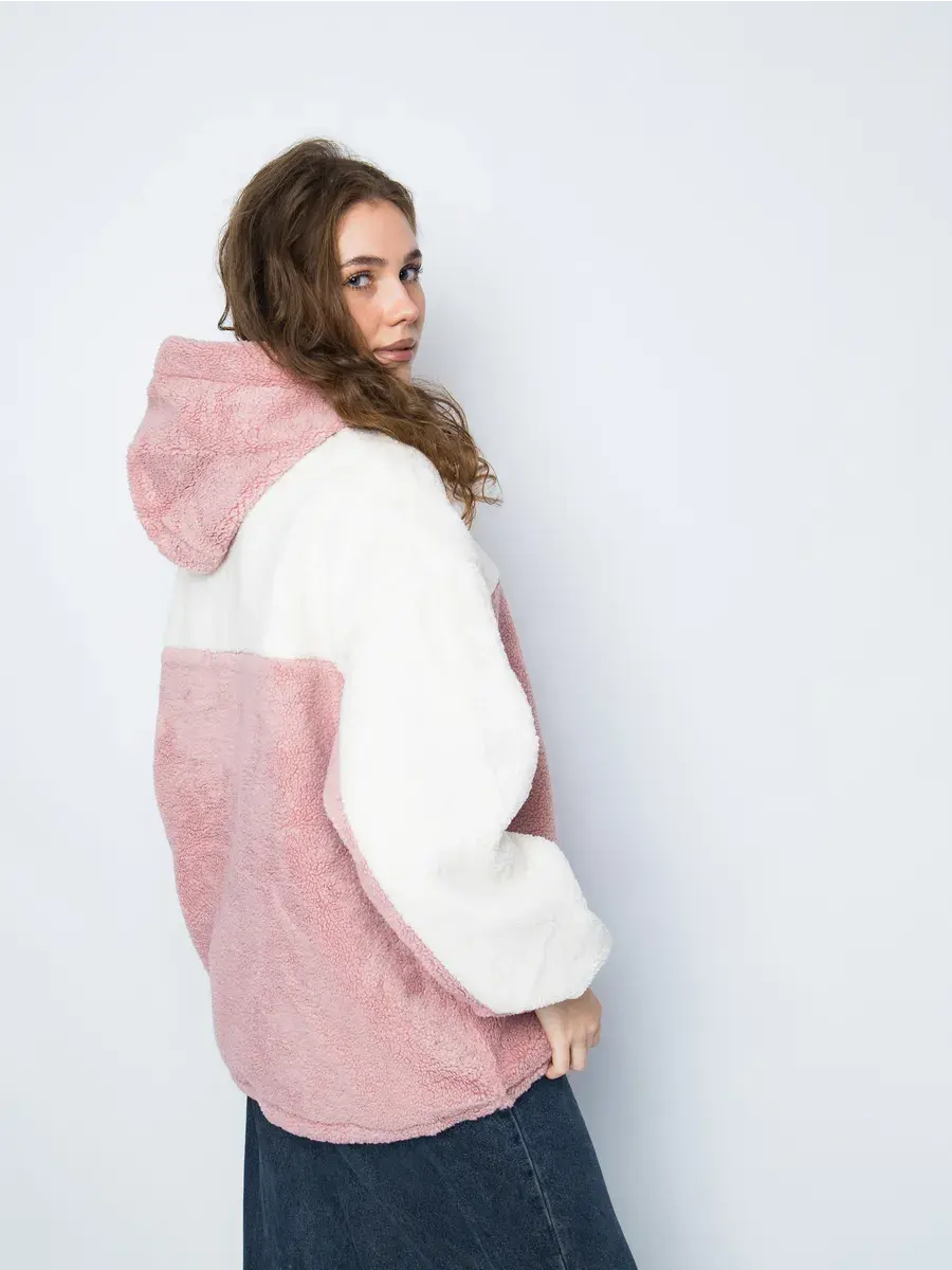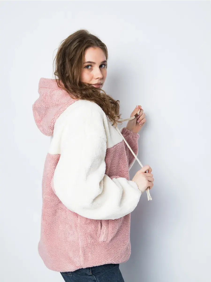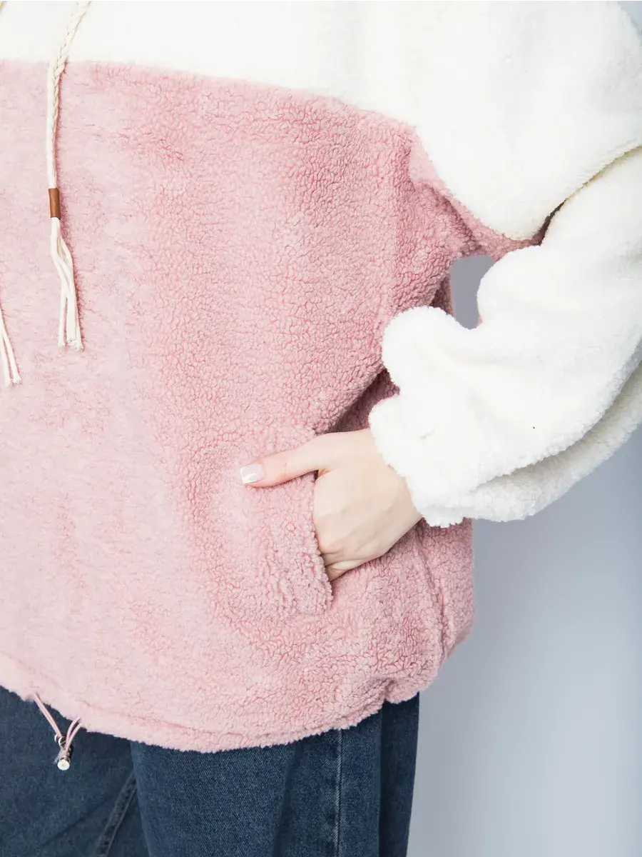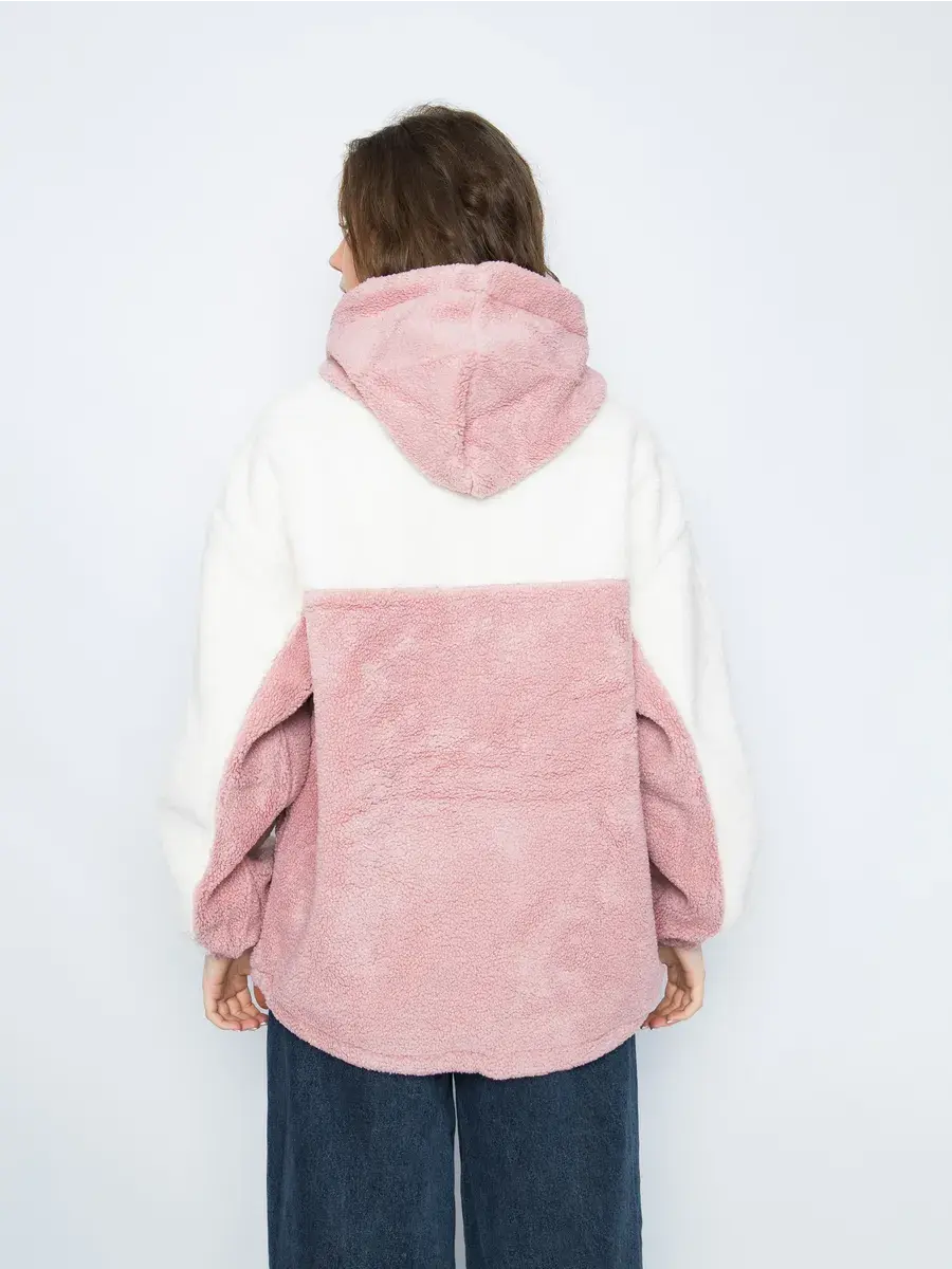 Толстовка утепленная - это идеальное сочетание комфорта и стиля, созданное специально для холодного сезона. Эта теплая худиа с капюшоном, выполненная из мягкого плюша, обеспечит вам уют и тепло в прохладные дни. Свободный крой и удобный капюшон делают ее идеальным вариантом для повседневной носки. Толстовка женская оверсайз оснащена прорезными карманами для удобства, а завязки позволяют отрегулировать посадку капюшона по размеру головы. Благодаря универсальному розовому или белому цвету, эта худи легко сочетается с любым гардеробом.