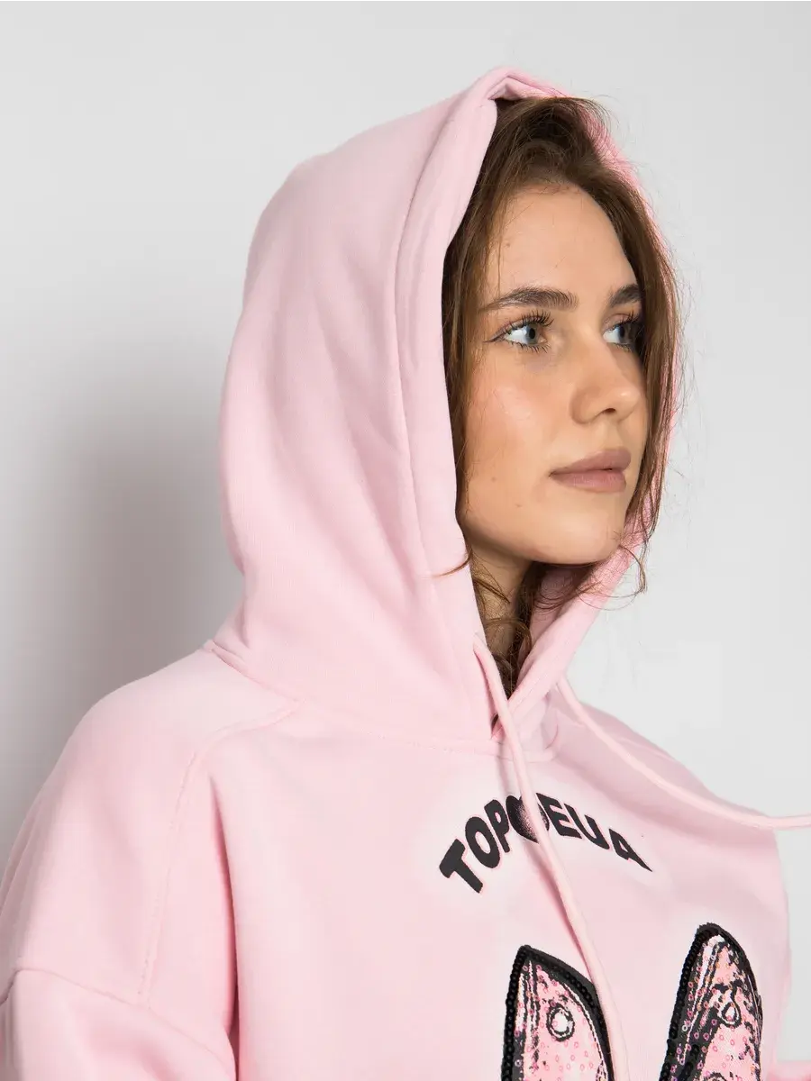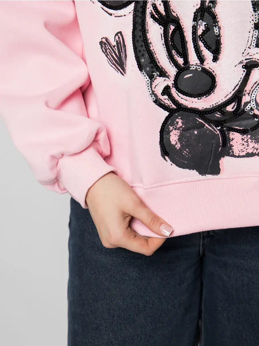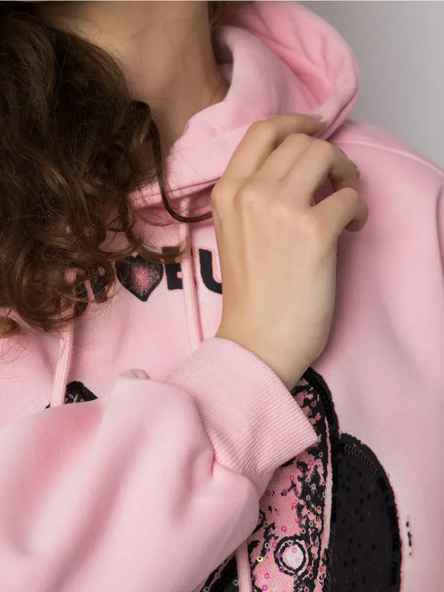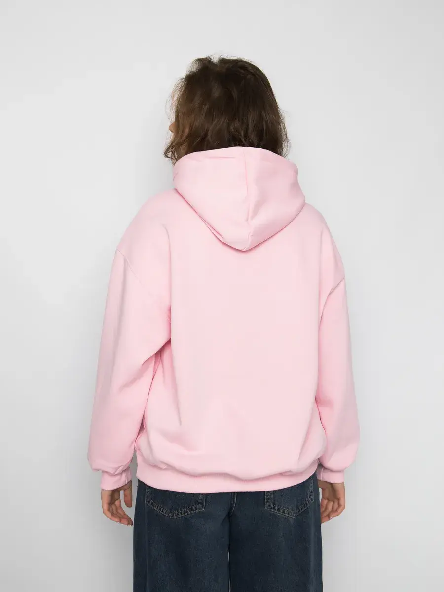 Толстовка женская утеплённая незаменимый вид одежды. Плотный трикотаж с утеплением внутри — мягкий флисовый начёс удерживает тепло и остаётся комфортным к телу. Свободная оверсайз посадка с заниженной линией плеч не сковывает движения, капюшон на кулиске защищает от ветра. Эластичные манжеты и плотная рибана по низу фиксируют посадку и помогают сохранять тепло, швы аккуратные и износостойкие. Центральный акцент — яркий принт-персонаж с долговечной отделкой: рисунок не трескается и сохраняет насыщенность после стирок. Материал неприхотлив в уходе: стирать при 30° наизнанку, быстро сохнет, не садится и не линяет. Модель хорошо сидит в привычном размере, даёт уют и чувство защищённости в прохладную погоду; подходит на осень, зиму и раннюю весну для города, учёбы и отдыха. Если ищете тёплое худи с начёсом и капюшоном в универсальном цвете, эта теплая толстовка станет практичным и стильным выбором.